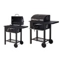 Barbacoa carbó 59x43x83cm. barbacoa de tamany mitjà per carbó, amb una zona de cuinar de 38cm de diàmetre. fabricada en acer inoxidable. inclou anses i regulador de ventilació per augmentar o disminuir la calor. inclou: 1 parrilla de 43cm de diàmetre, 1/2 parrilla, 1 safata cendrer, 1 per recuperar la cendra i anses. color negre i plata.