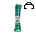 Troca plàstic revestit 15mts verd. composició: monofilament de polietilè torçat 3 caus. recobert de pvc. característiques: suau, bona resistència, poca elasticitat. fàcil neteja. utilitats: estenedors exteriors i interiors, càmping ,nàutica, cercats, agricultura, industria en general, bricolatge