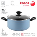 Bateria vivant 4 peces negre alumini 3004 fagor.. equipat amb: 1 paella de 20cm , 1 paella de 24cm i una olla de 24cm. alumini forjat de 3mm. òptima distribució de la calor. interior antiadherent bicapa efecte pedra. tapes de vidre termorresistent amb vora d'acer inoxidable i chimeneia. mànecs i anses ergonòmiques de baquelita termoaïllant. apte per a tot tipus de focs. fagor.