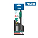 Blister portaminas 5,2mm + 6 minas recambio milan. portaminas profesional 5.2 mm con afilaminas (incorporado debajo del capuchón). color negro. incluye 6 minas de grafito 5.2 mm b.